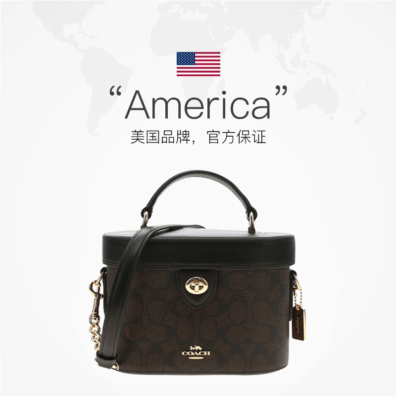 蔻驰奥莱款 COACH 女士老花kay单肩斜挎手提盒子包CBQ35 自营