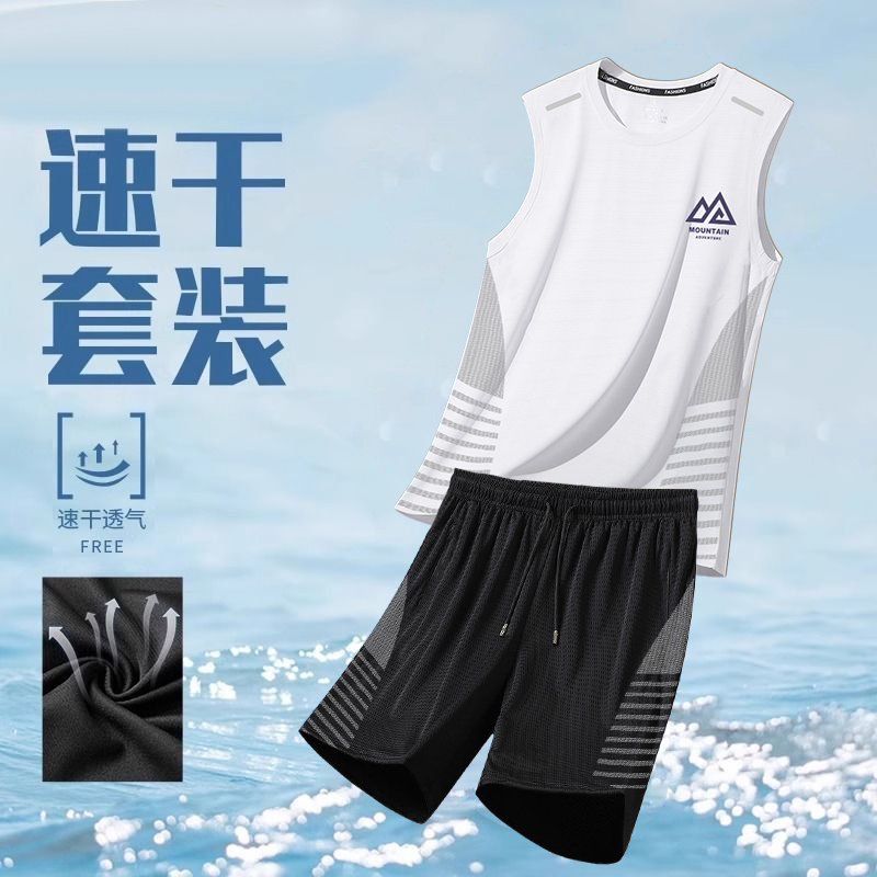 背心跑步坎肩运动休闲套装 男速干凉感透气薄款 冰丝运动套装 夏季