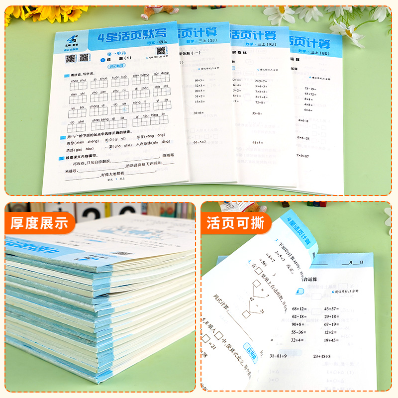 2025秋小学学霸4星活页默写计算能手一二三四五六年级上册语文数学人教北师江苏教版 活页试卷专项训练四星 同步练习册一课一练单元