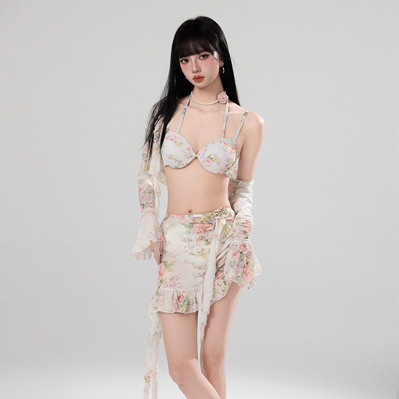 泳装 2025新款 绝美泳衣女士分体高级感纯欲性感海边度假四件套裙式