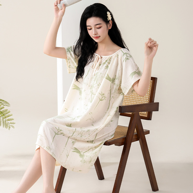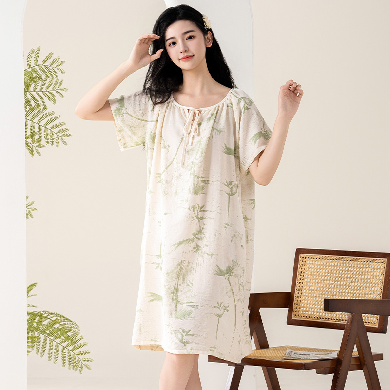 连衣裙休闲卡通睡衣女士家居服2025新款 中长款 纯棉短袖 睡裙女夏季