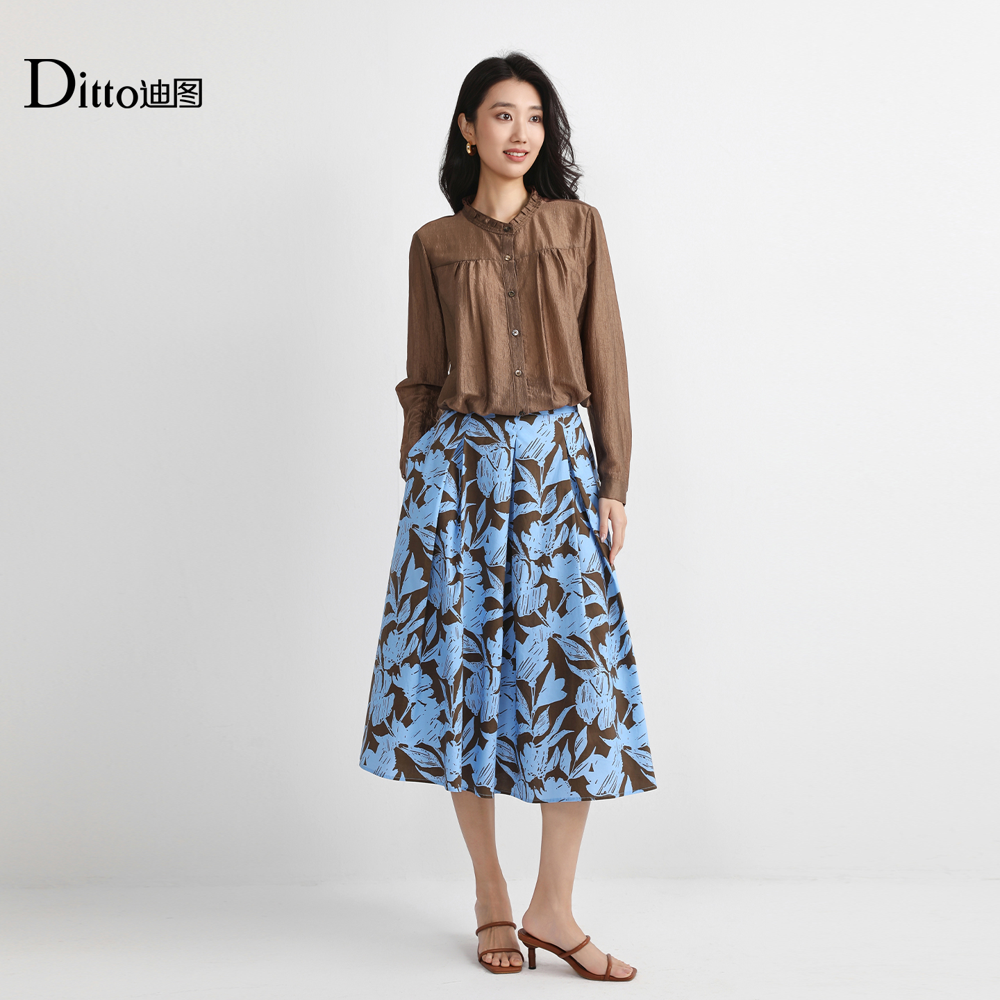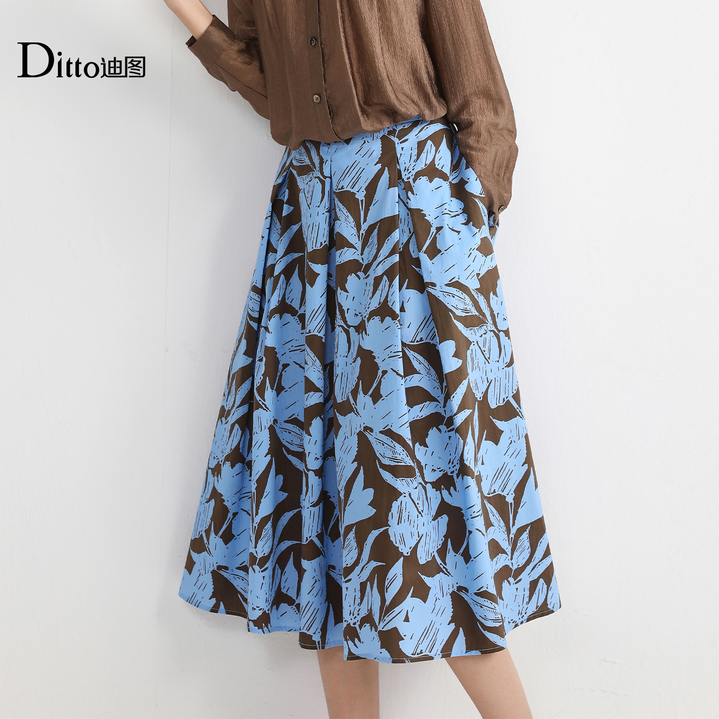 优雅碎花复古半身裙优雅印花气质A字裙 新款 Ditto 迪图2025秋季