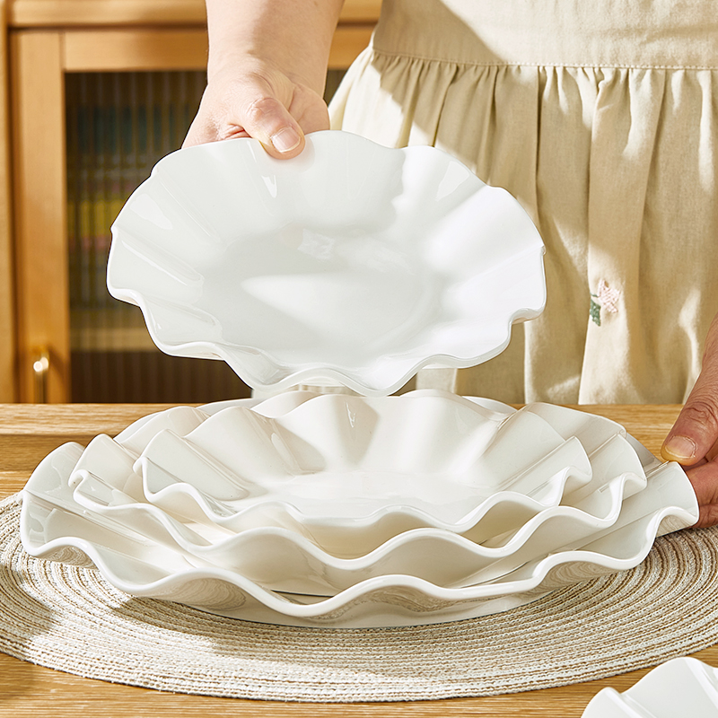 摩登主妇白瓷草帽盘陶瓷家用菜盘2025新款 意面盘西餐盘高级感盘子
