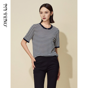 小衫 马天奴秋新款 t恤莱赛尔薄款 针织衫 流行上衣 条纹短袖
