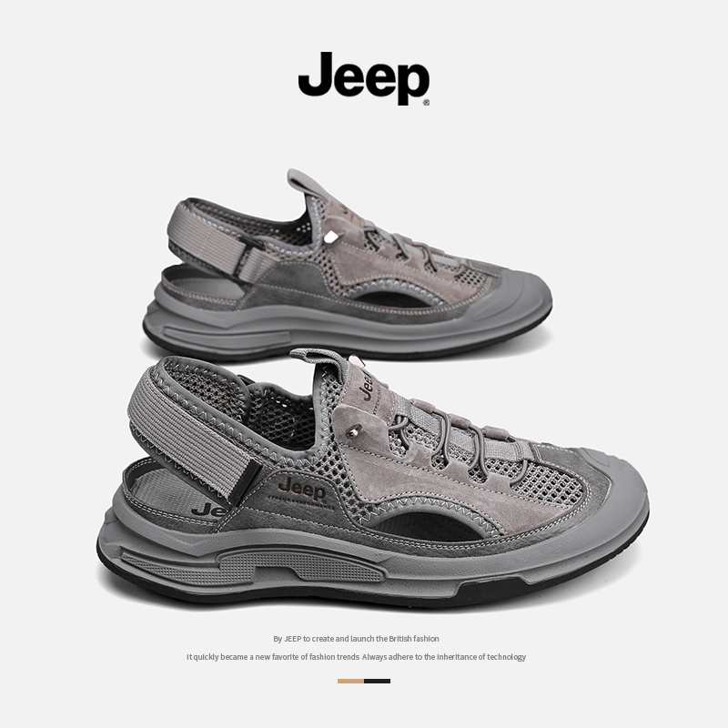 户外轻质透气青年网面一脚蹬休闲鞋 JEEP吉普男鞋 凉鞋 百搭夏季 时尚