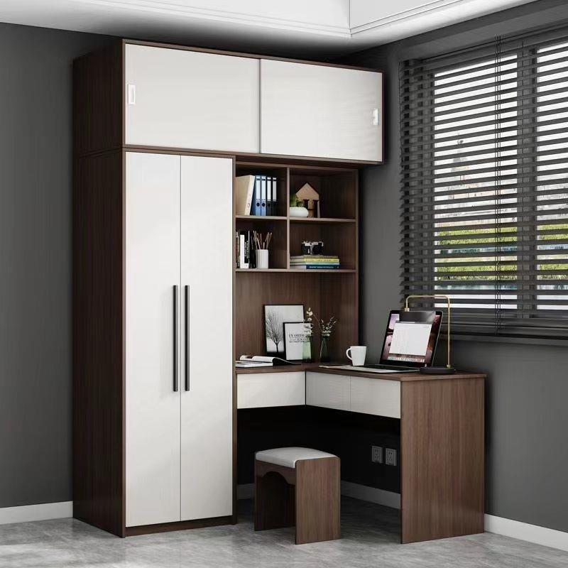 家用转角衣柜书桌一体组合L型连体电脑桌小户型拐角写字台学习桌