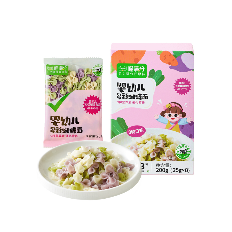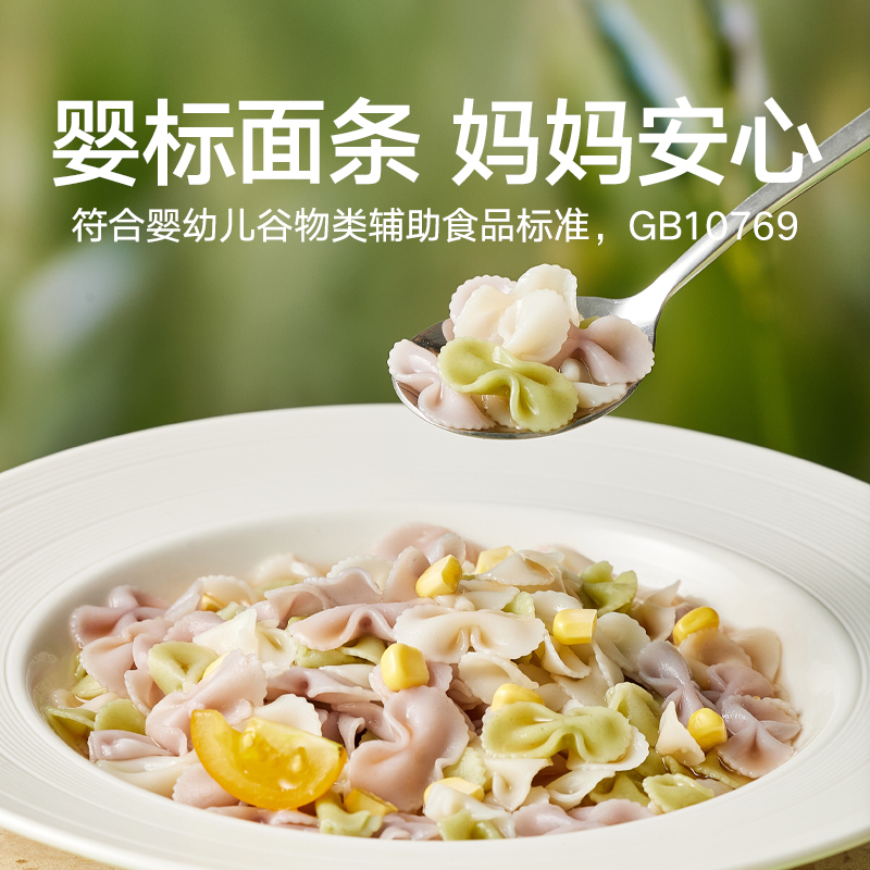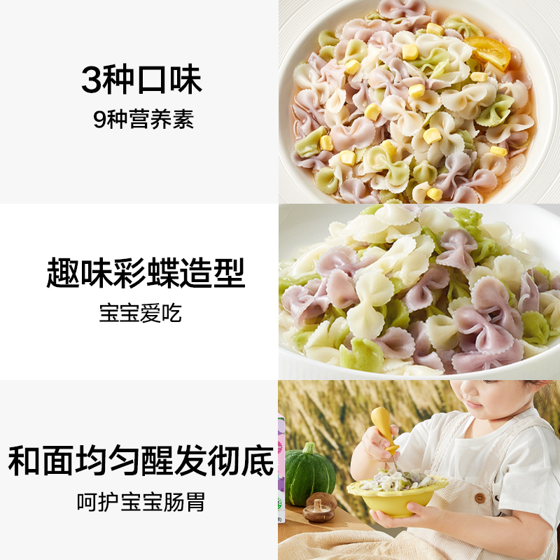 下拉领淘金币喵满分宝宝面6月龄辅食面蝴蝶面200g无添加盐营养面