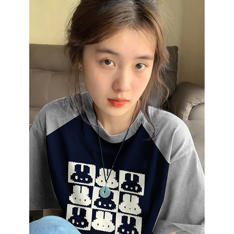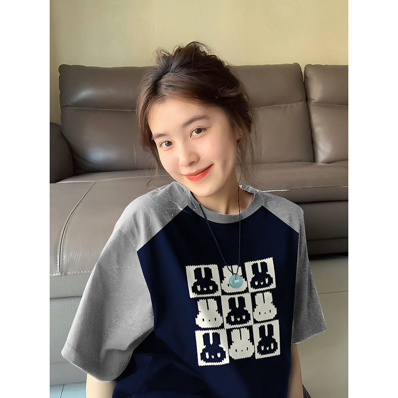 大码 显瘦t恤女2023新款 胖mm遮肚上衣藏肉潮 纯棉宽松插肩短袖 夏季