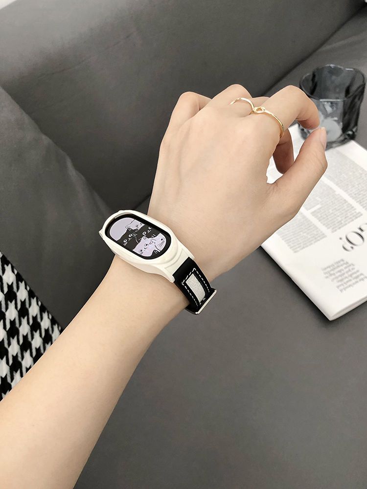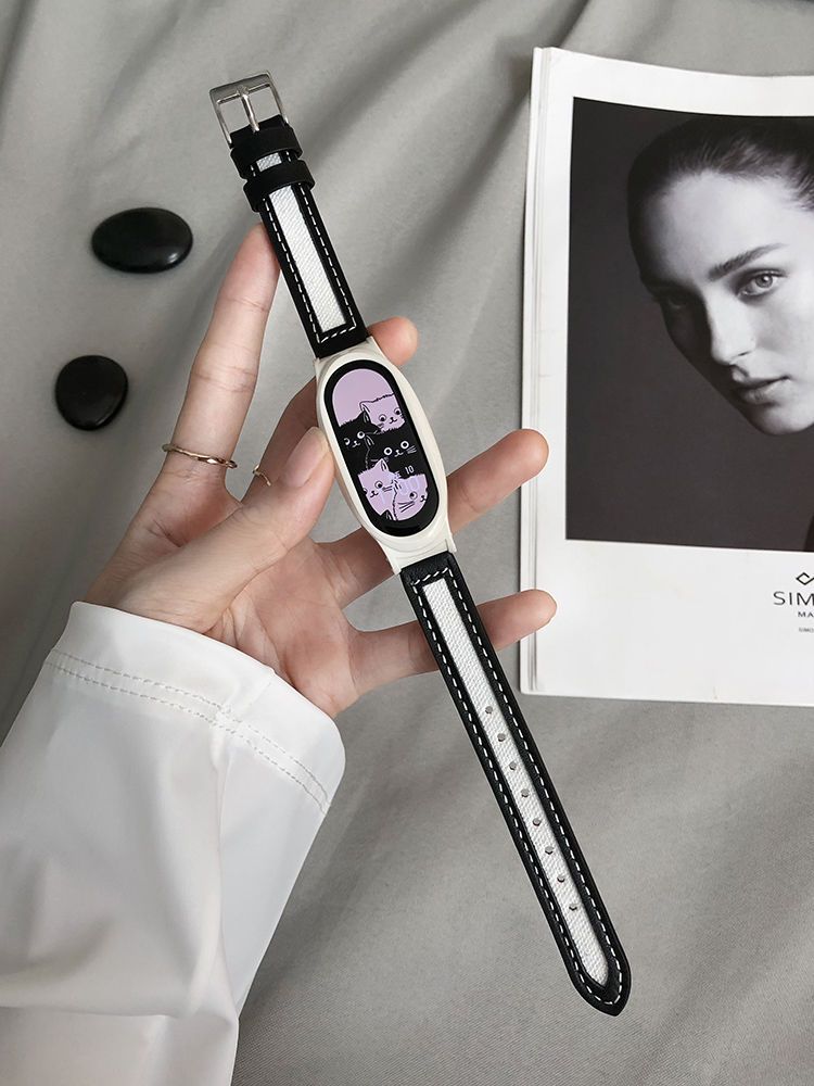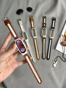 4NFC版 适用小米8手环腕带新款 6皮革表带3 腕带5 ins替换表带情侣女黑白双拼表带腕带 双色皮革表带米7nfc版