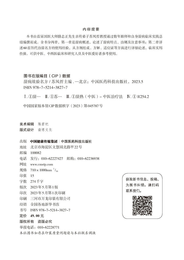 湿病效验名方 社 苏凤哲 中国医药科技出版 9787521438277 主编 现货正版