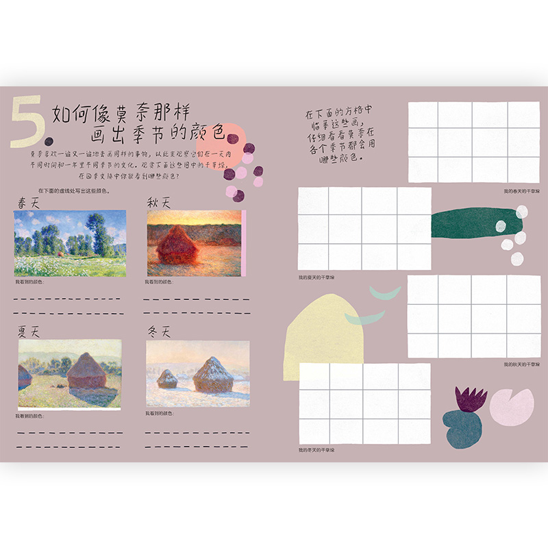 杰作 莫奈风格 浪花朵朵童书 内含50个贴纸和1张大海报让孩子可以创作自己 浪花朵朵现货我和大师一起画:莫奈