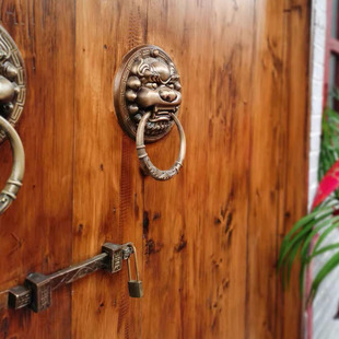 中式 大门拉手仿古铜狮子头把手复古纯黄铜木门配件麒麟头虎头门环