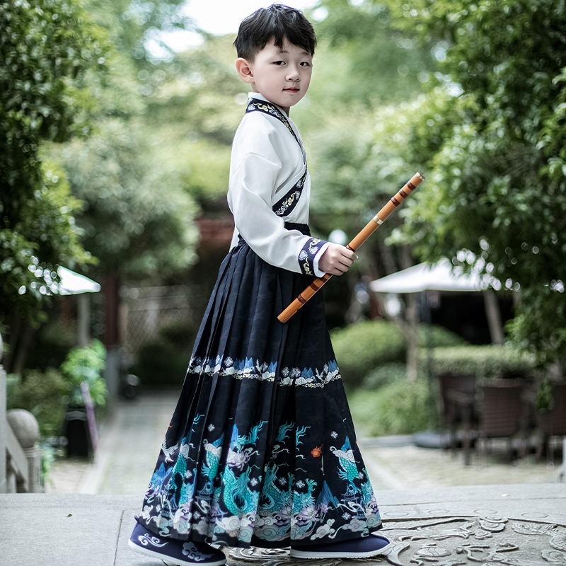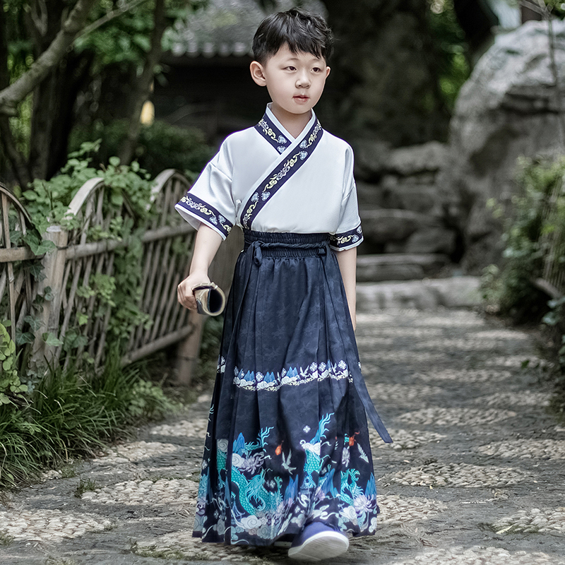 古装 男童汉服套装 儿童新中式 夏季 国学服古风男孩 演出服马面裙短袖