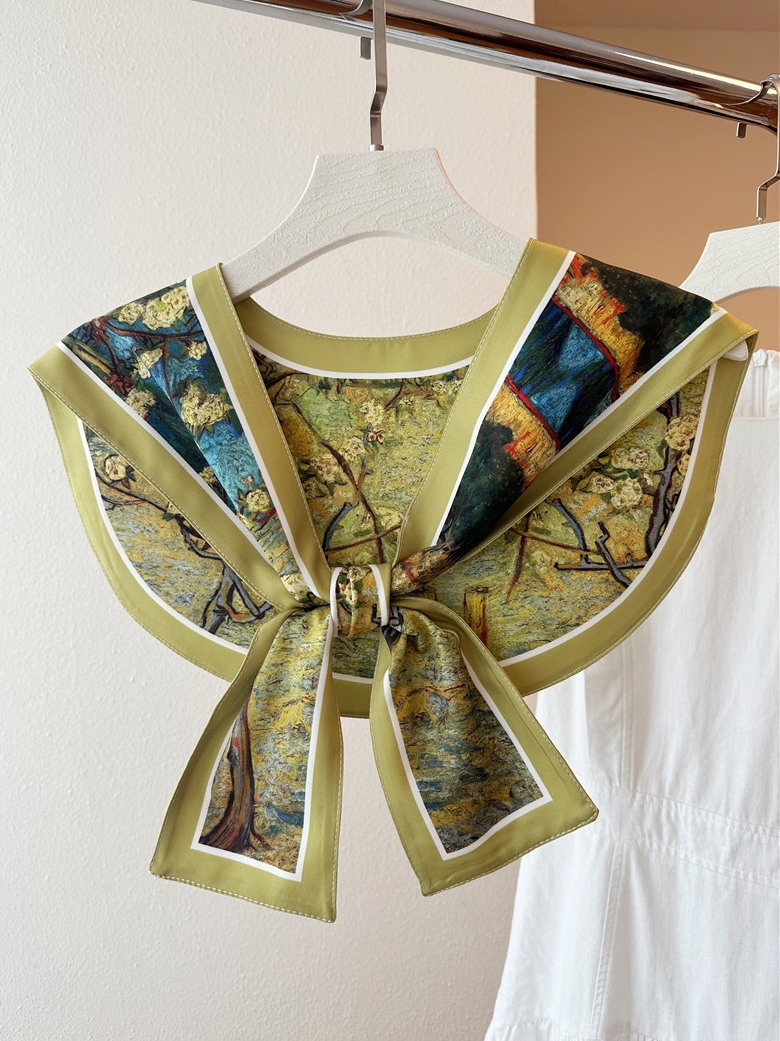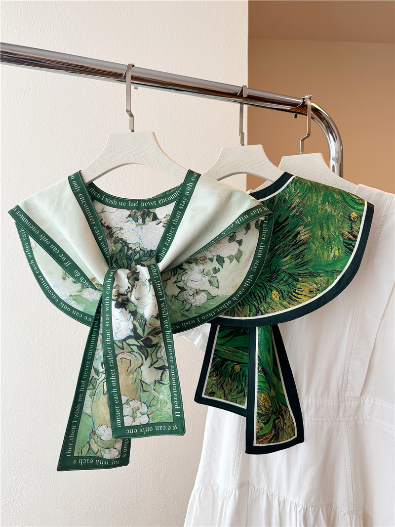 饰领巾搭肩配衬衫 女百搭装 假领子 春秋外搭油画小披肩丝巾薄款 韩版