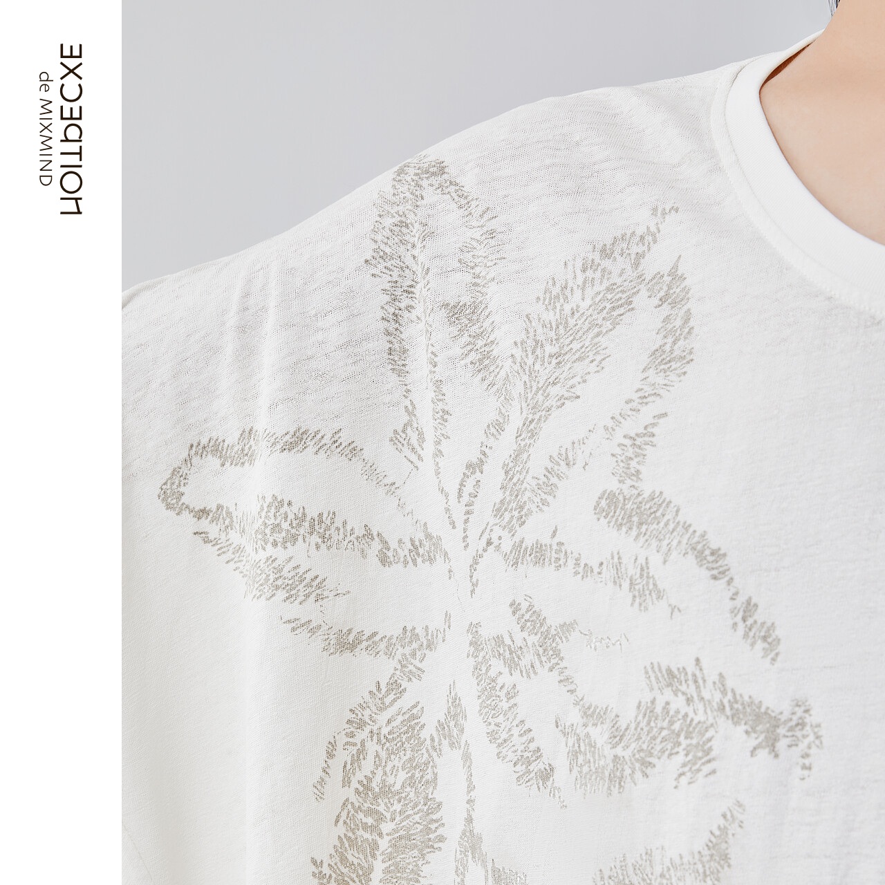 丝网印花工艺针织短袖 亚麻落肩蝙蝠袖 T恤 春夏款 EXCEPTION例外女装