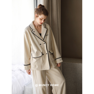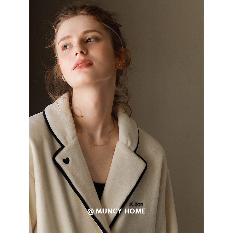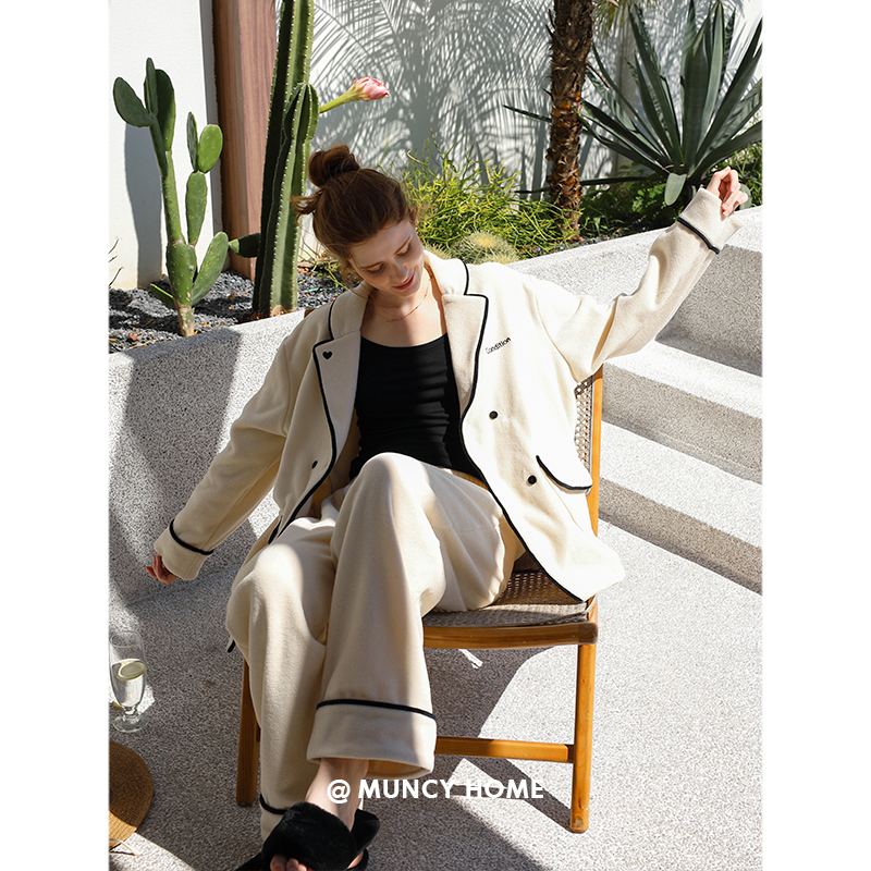 杏色珊瑚绒保暖套装 开衫 家居服长袖 曼系海岛绒睡衣女秋冬宽松时尚