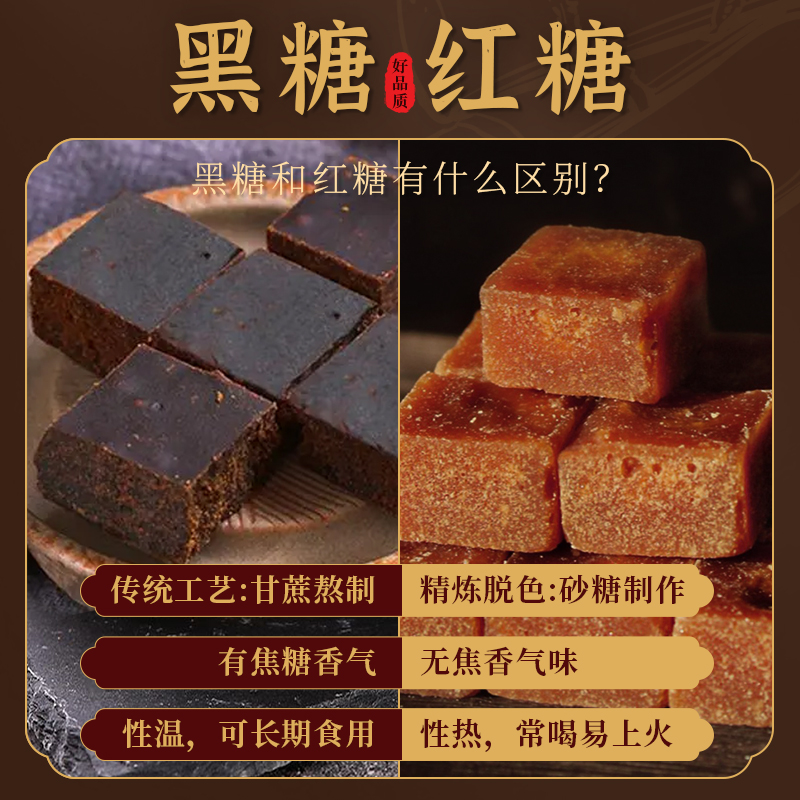 中广德盛 纯甘蔗手工正宗广西黑糖块泡水喝 红糖块官方旗舰店正品