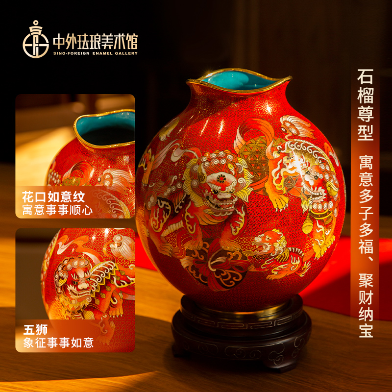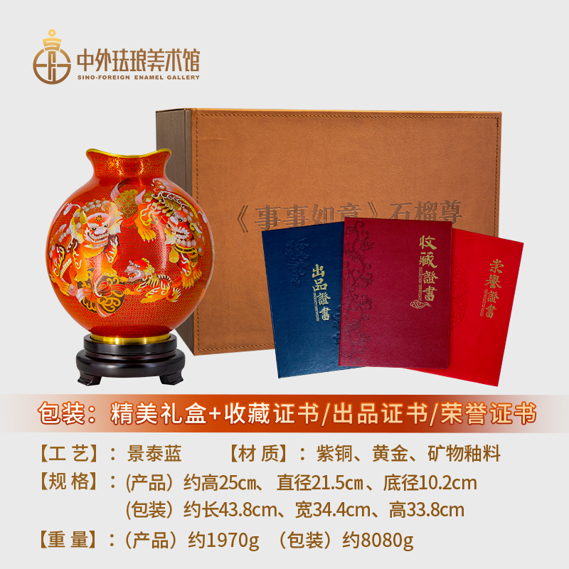 中外珐琅美术馆景泰蓝摆件事事如意石榴樽送礼高档节日商务礼品