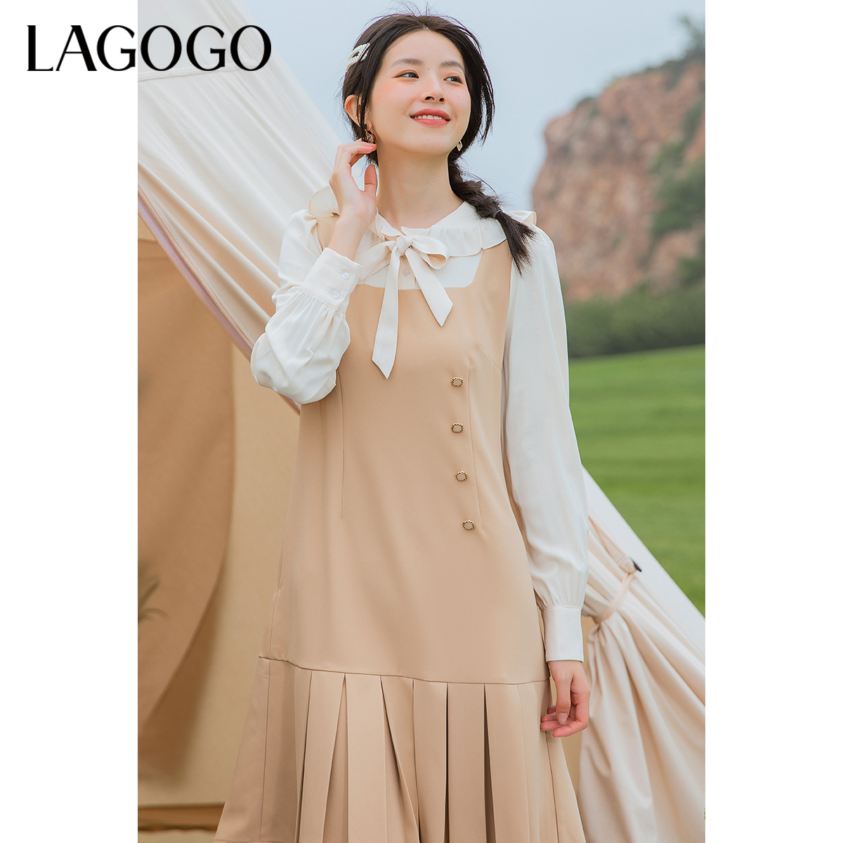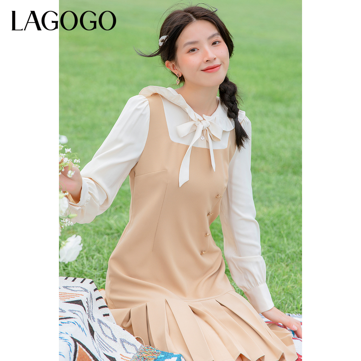 法式 LULUALWAYS 新款 25春季 优雅浪漫温柔木耳边连衣裙 商场同款