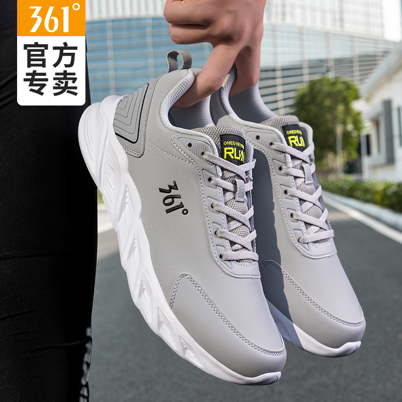 正品 新款 皮面防水休闲男鞋 轻便跑步鞋 361运动鞋 子男款 男夏季
