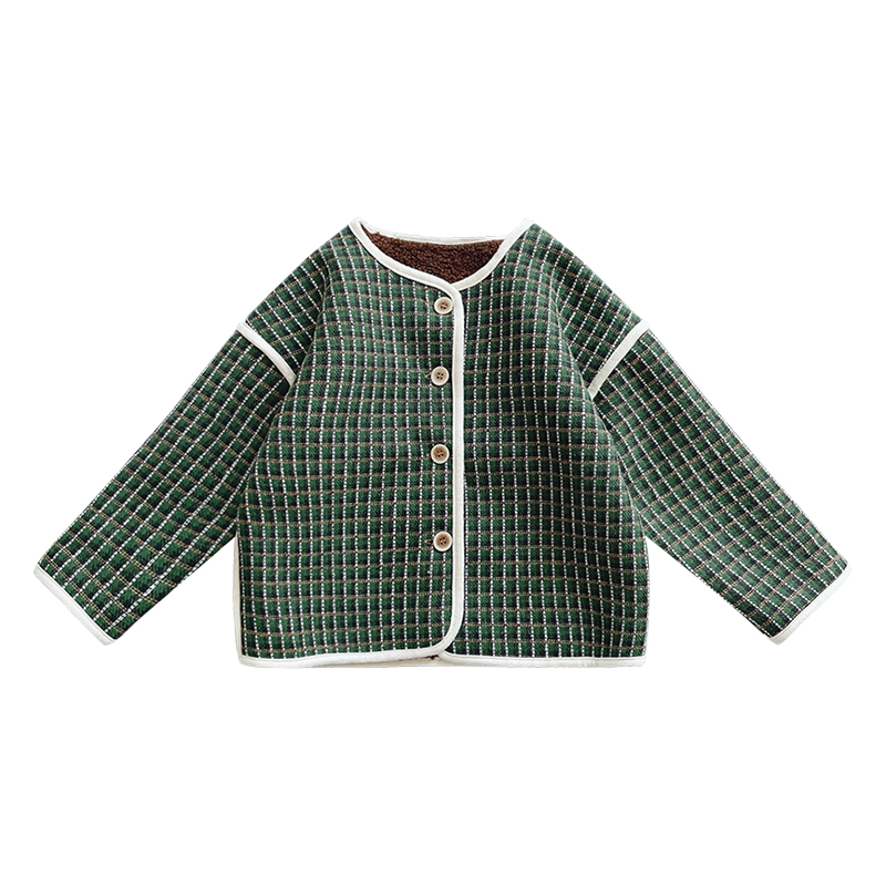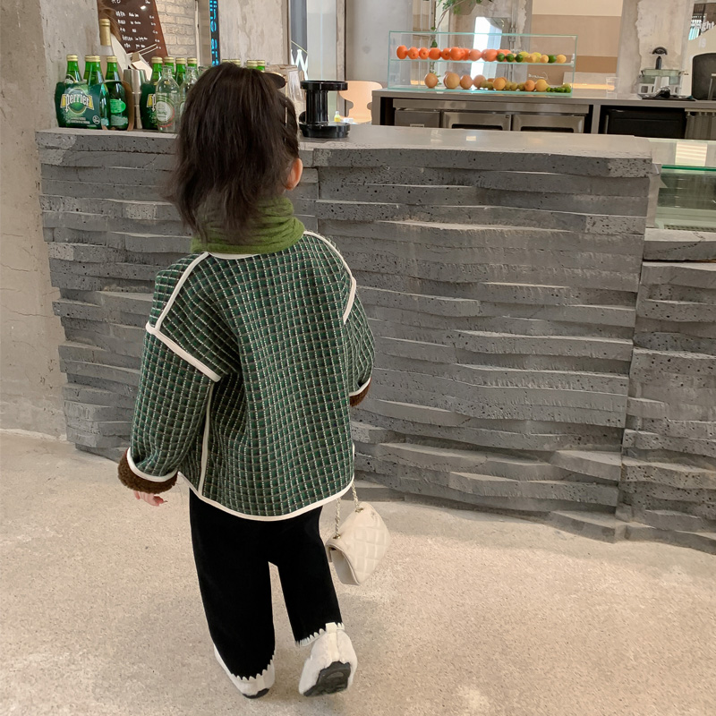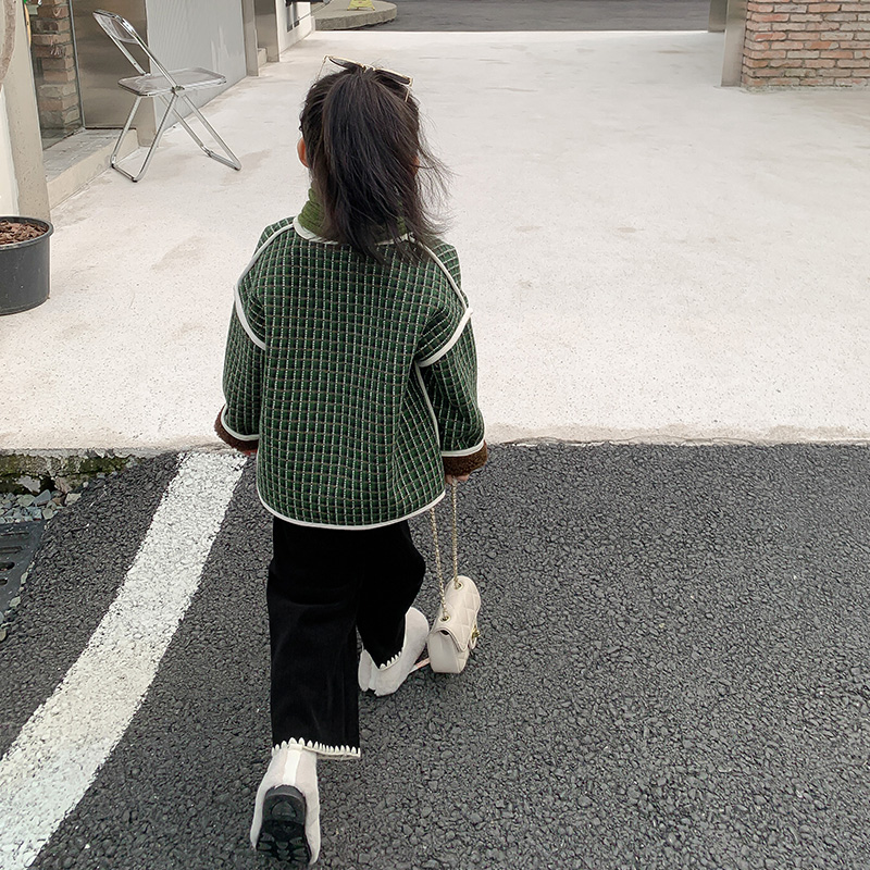秋装 洋气时髦儿童装 羊羔绒格子毛毛衣 2025新款 女童加绒外套秋冬款