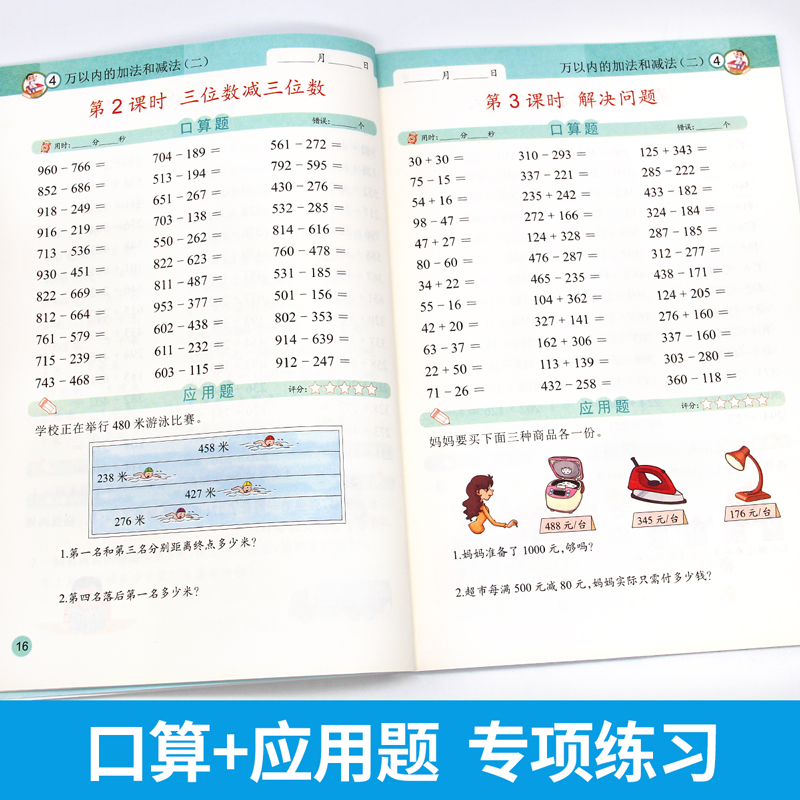 三年级上下册口算 计算题 应用题小学生3年级口算题卡天天练每日一练数学思维训练混合运算加减法乘除法专项强化练习题册小学人教版