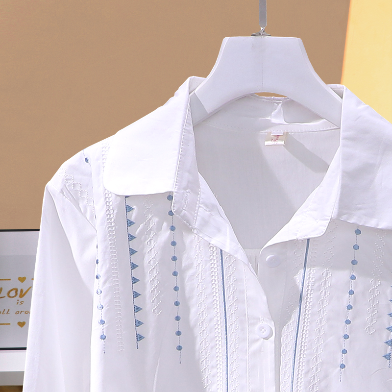 花边V领长袖 设计感减龄气质刺绣小衫 衬衫 新款 上衣 女2025春季 法式