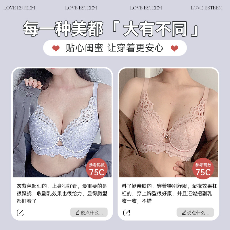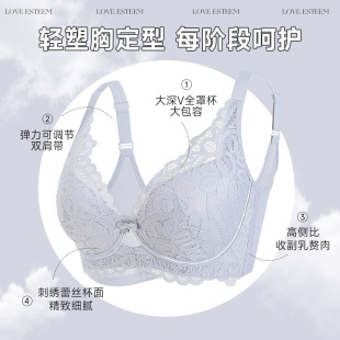 爱黛全罩杯文胸大胸显小胸内衣女聚拢收副乳上托调整型性感蕾丝