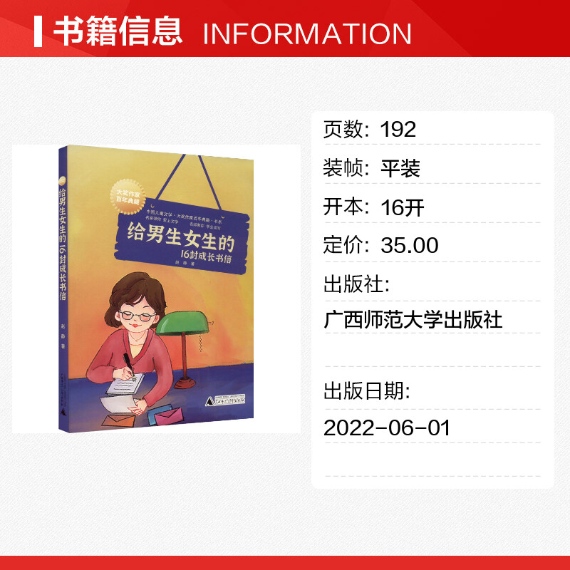 著 儿童文学少儿 新华书店正版 给男生女生 广西师范大学出版 赵静 图书籍 社 16封成长书信