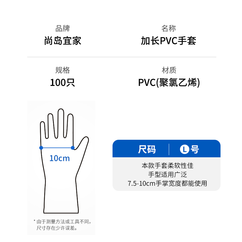 sodolike食品级加长加厚家务PVC手套清洁餐饮厨房100只 包邮