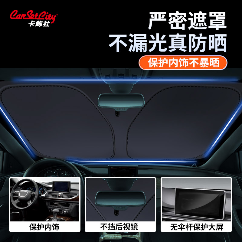 汽车防晒隔热遮阳挡2025新款 遮阳挡板银钛双圈车内前档玻璃遮光帘
