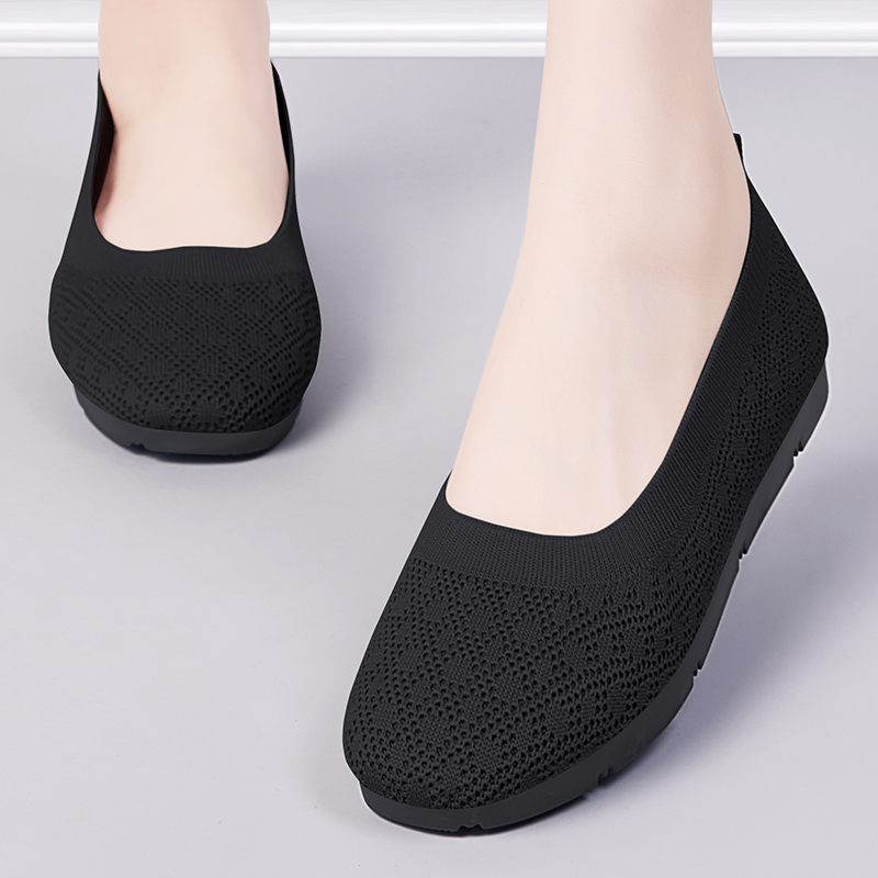 软底不累脚透气黑色工作鞋 老北京布鞋 平底一脚蹬豆豆鞋 夏季 女新款