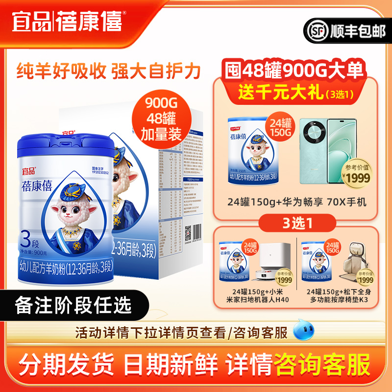 宜品蓓康僖婴幼儿配方羊奶粉3段900g 48罐 大单送好礼