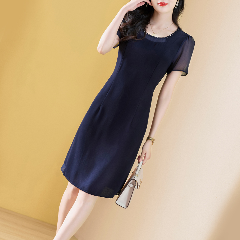 连体一步长裙 内搭小圆领修身 黑色打底连衣裙女春秋中长薄款 紧修身