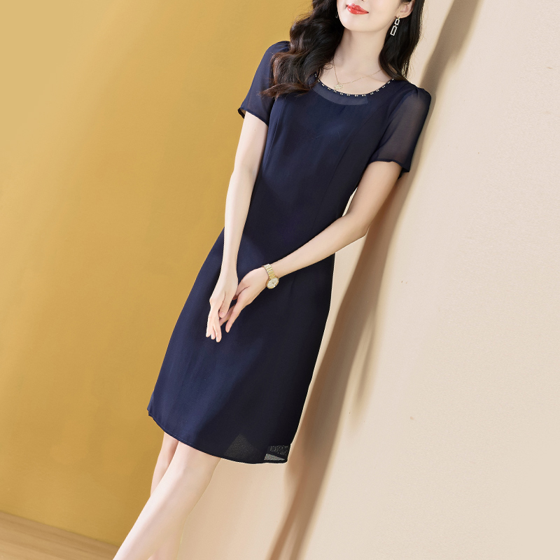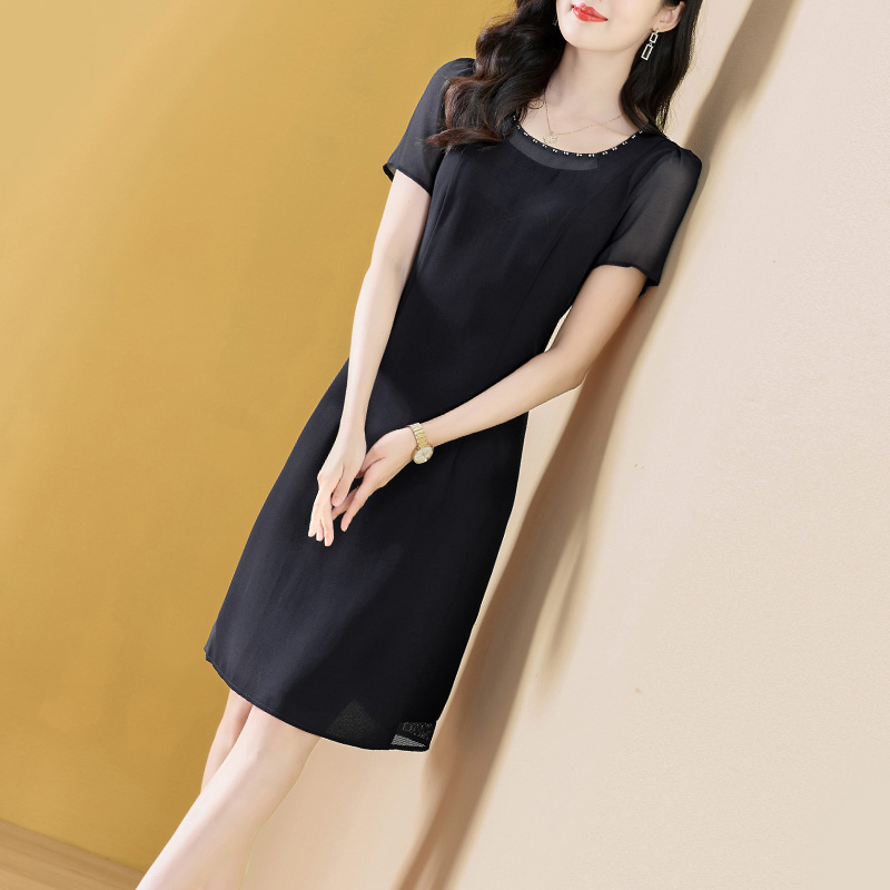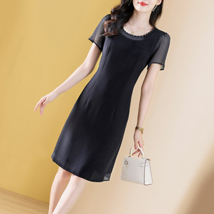 佐贝卡黑色连衣裙女夏宽松直筒中长款 Polo裙T恤裙 裙子休闲a字短袖