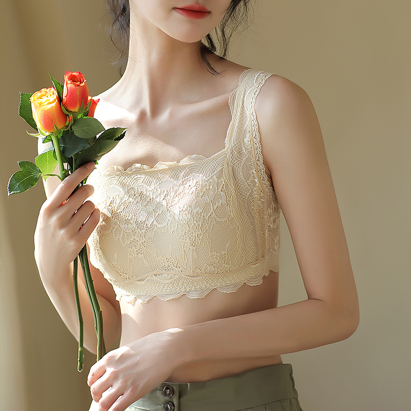 维密明星同款 吊带美背内衣女 格蕾丝Logo字母肩带文胸纯欲蕾丝法式