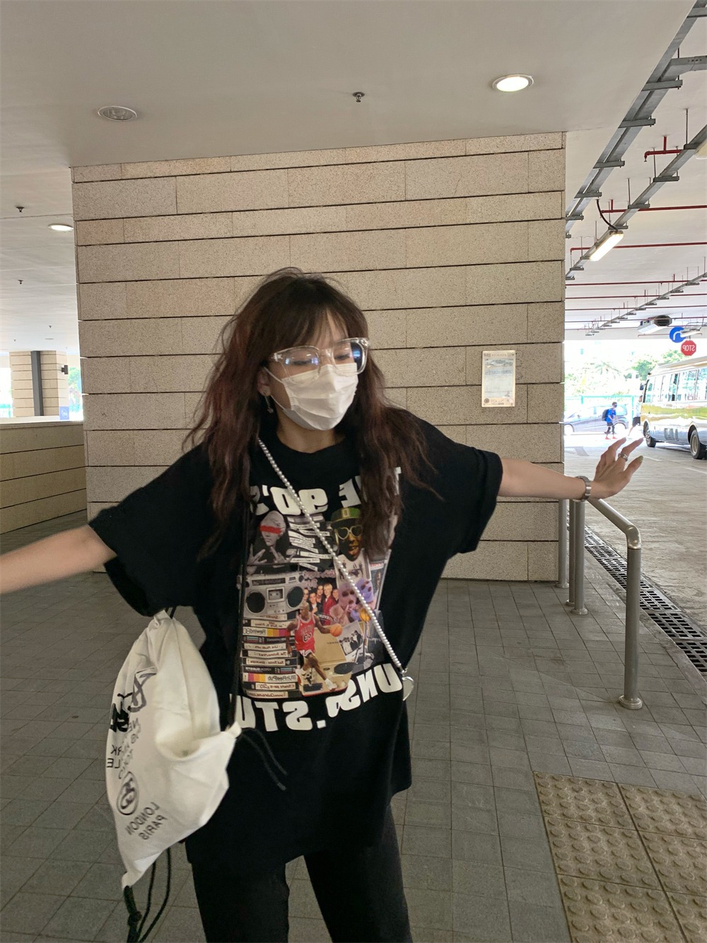 纯棉上衣 ins潮夏季 潮牌街头风黑色情侣T恤女oversize大码 高街短袖