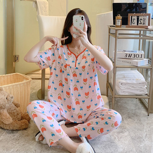 棉绸睡衣女薄款 大码 短袖 绵绸可爱卡通套装 学生家居服 长裤 夏天新款