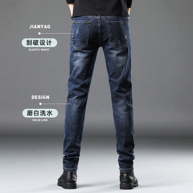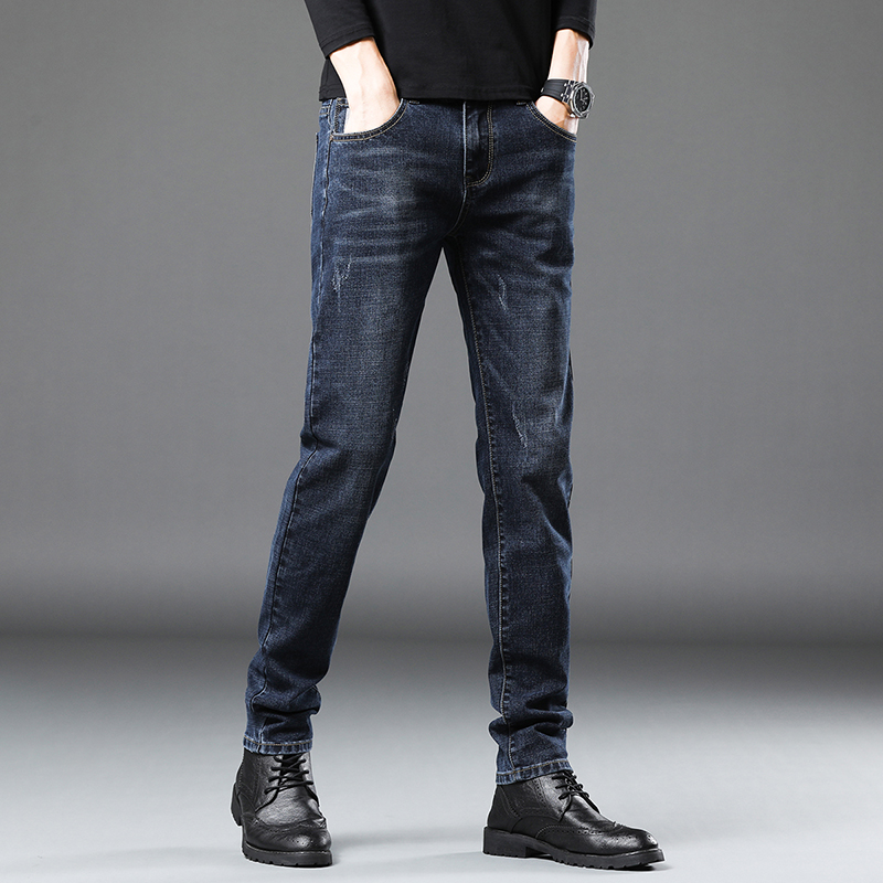 子cleanfit长裤 高街百搭做旧裤 男秋美式 V37复古蓝水洗直筒牛仔裤