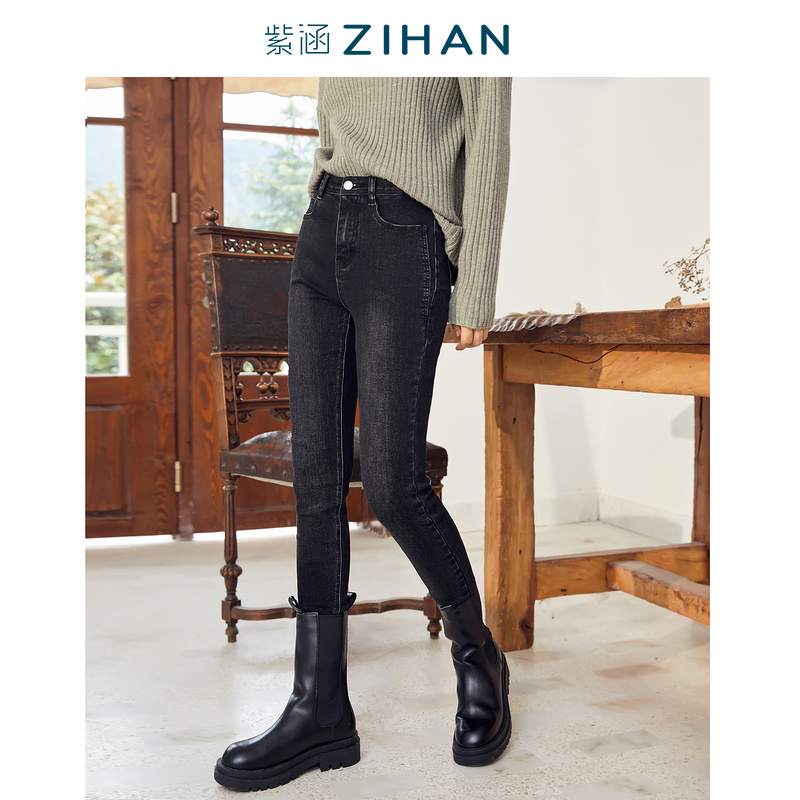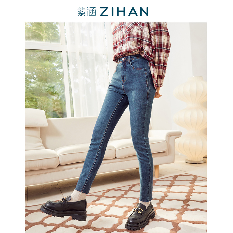 JEANS ABLE 提臀裤 女士高腰修身 女 百搭紧身小脚牛仔裤 预售