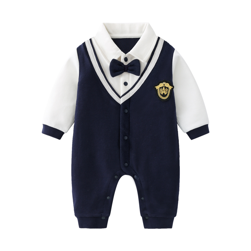 婴儿小少爷服春秋冬季 衣服学院风连体衣男宝宝满月宴百天周岁礼服