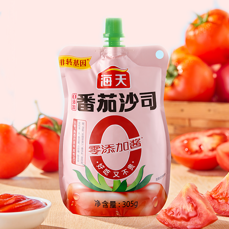 海天0添加番茄沙司305g挤挤袋装 家用番茄酱薯条汉堡炸鸡意面蘸酱