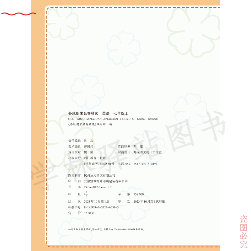 学林驿站初一7年级英语上册R初中单元 各地期末名卷精选七年级上册英语人教版 综合复习检测各地期末全真考查卷参考答案 7英R 2023秋