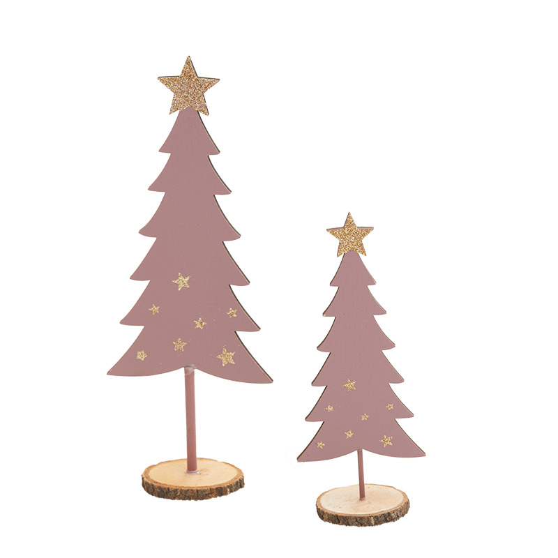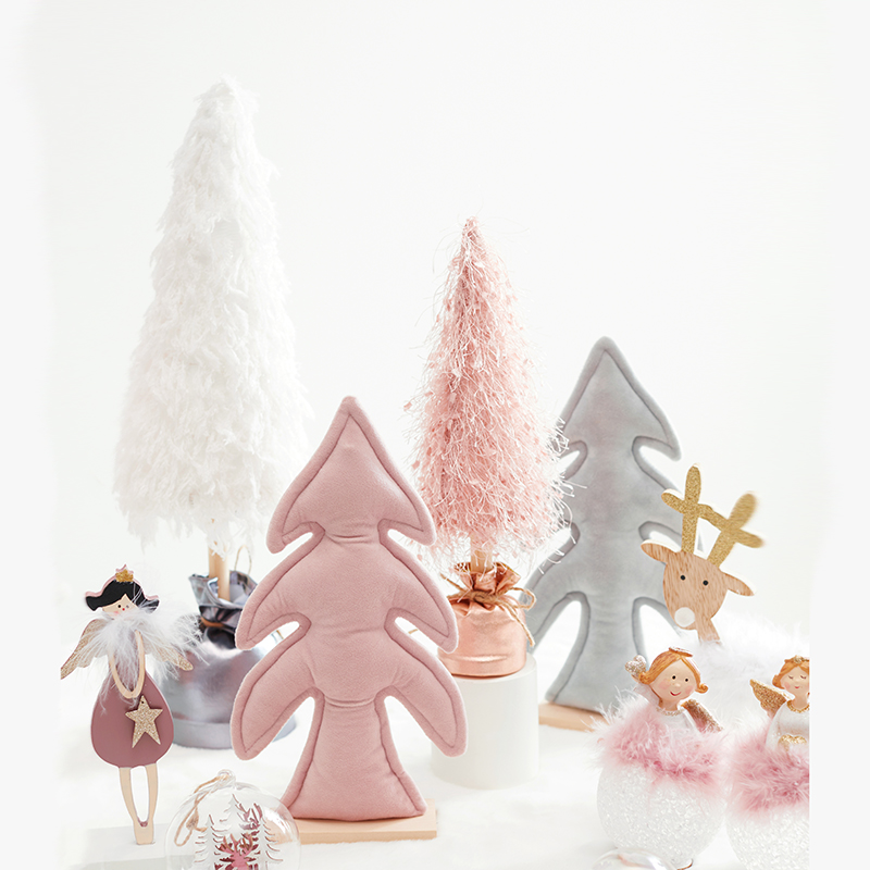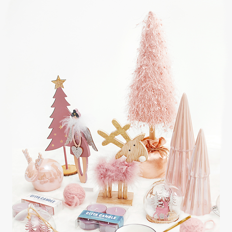 粉色发光圣诞树家用木质桌面摆件小型套餐圣诞节装 饰场景布置礼物