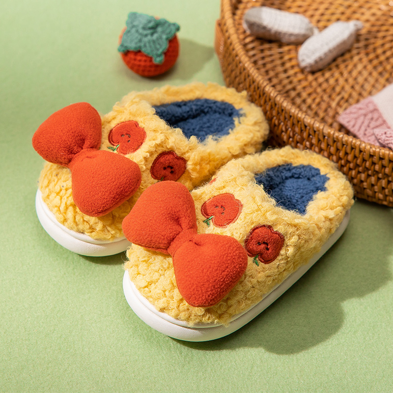 亲子拖鞋 家居鞋 宝宝秋冬棉拖 秋冬蝴蝶结加绒女童冬季 儿童棉拖鞋