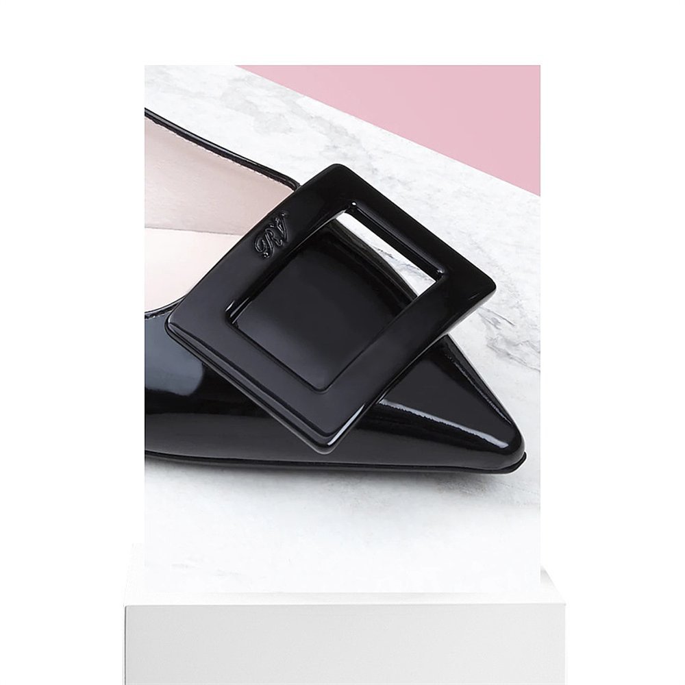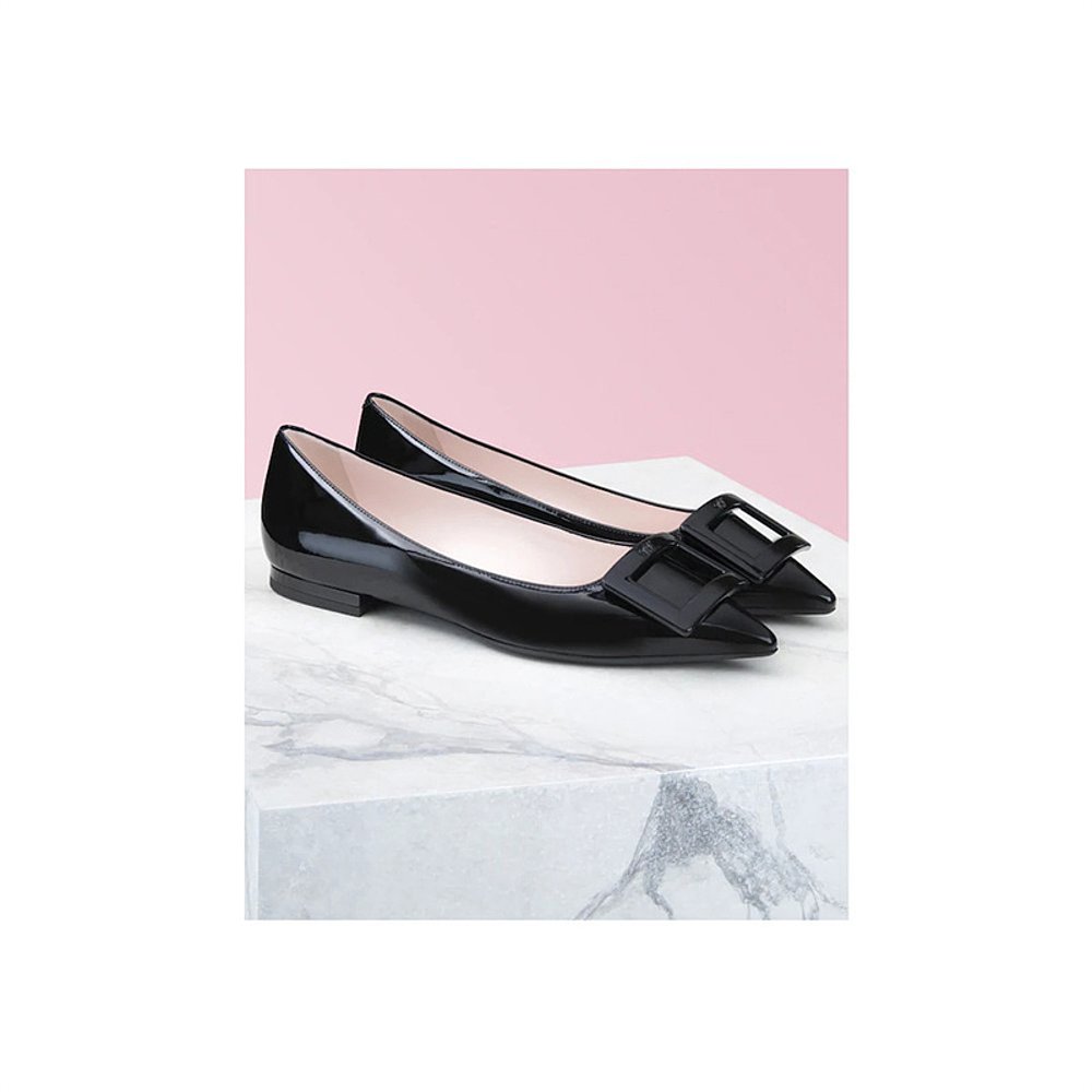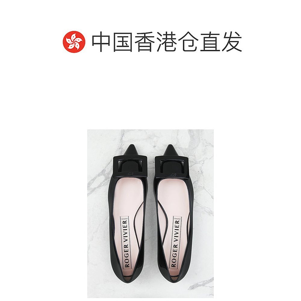 香港直邮Roger 女士黑色尖头平底细节logo平底夏 Vivier搭扣芭蕾鞋
