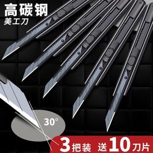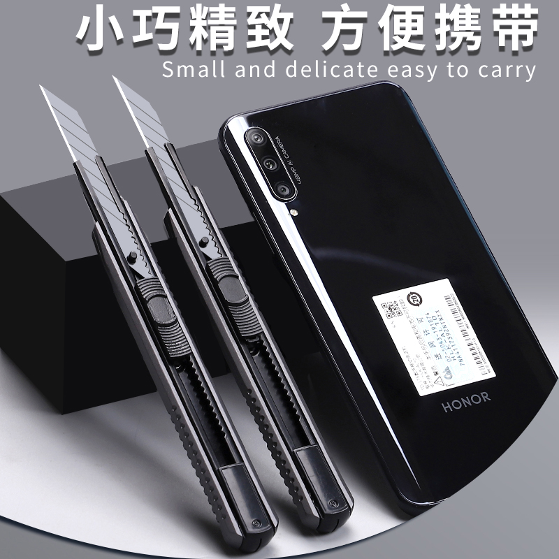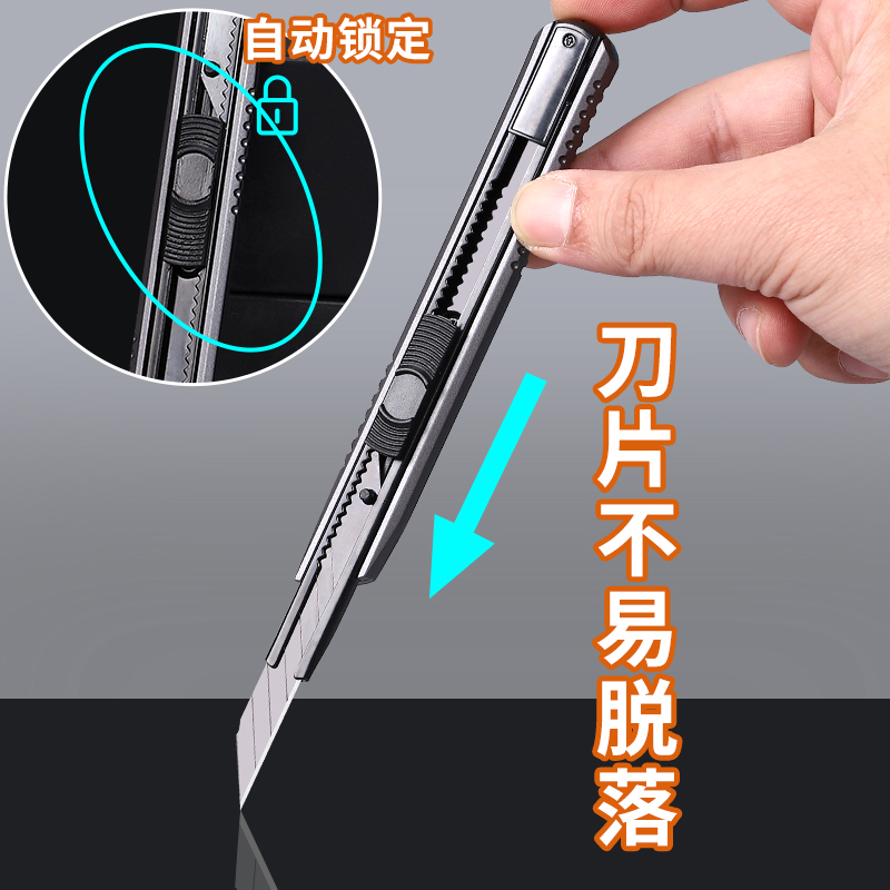 美工刀小型壁纸刀刀片30度裁纸刀拆快递小刀工具刀便携小号高颜值伸缩刀墙纸刀全金属钛合金刀架切割刀送得力