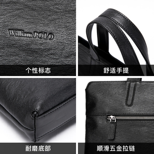 英皇保罗真皮男包商务手提包横款 公文包大容量简约休闲手拿牛皮包