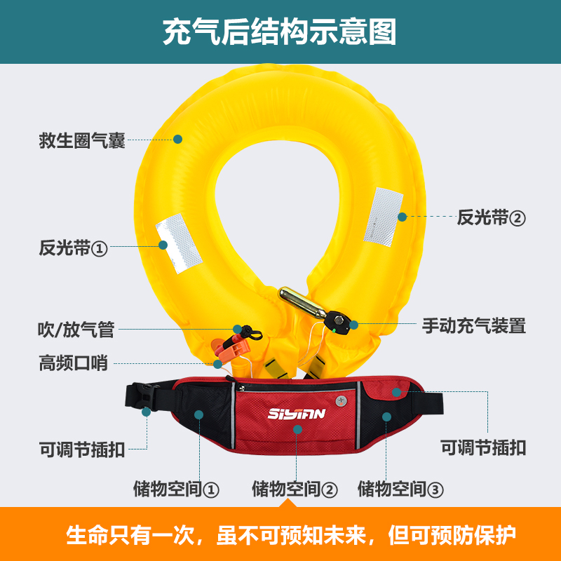 救生衣钓鱼自动充气大浮力腰带便携式 船用路亚车载应急救生圈成人
