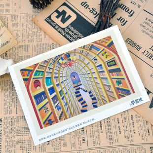 明信片ins简约明星中国城市旅行游景点重庆成都北京上海文艺小贺卡片中秋国庆教师节留言送老师礼物 钟书阁